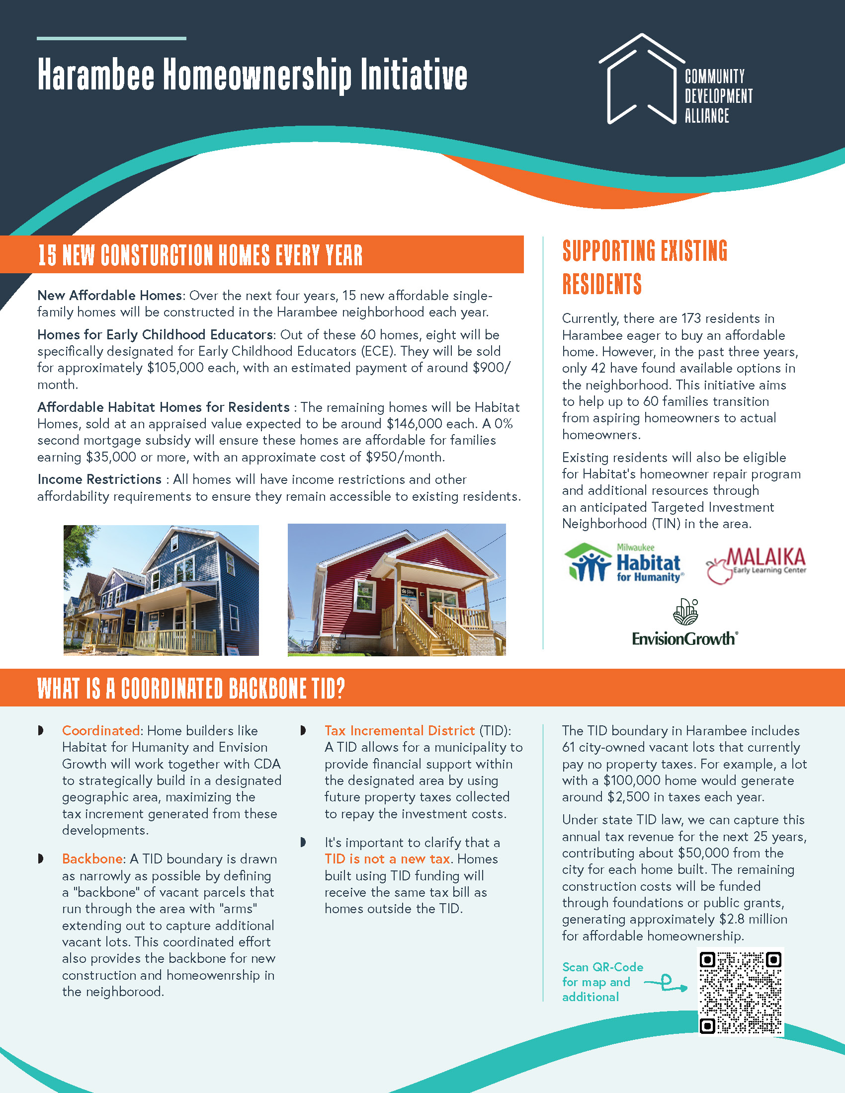 En los próximos 3 años, se construirán aproximadamente 60 nuevas viviendas en el vecindario de Harambee. Ocho de las viviendas estarán disponibles exclusivamente para docentes de educación inicial.